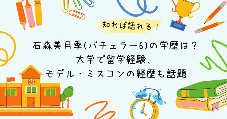 『バチェラー・ジャパン』シーズン6に出演し、「ソロ活クイーン」のキャッチコピーで話題を集めている石森美月季さん。 現在27歳でインバウンド向けのツアー企画・開発に携わる国際派キャリア女子でもあります。 今回はそんな石森さんの気になる学歴や留学... -