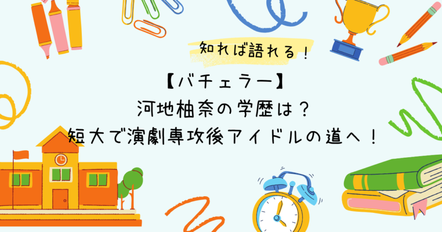 『バチェラー・ジャパン』の6シーズンに登場する河地柚奈さん。 舞台女優としての顔を持ちつつ、かき氷店でも働くなど、多彩な経歴の持ち主です。 さらに過去にはアイドルとしても活動していたという一面も。 そんな彼女がどんな学生時代を送っていたか気... -